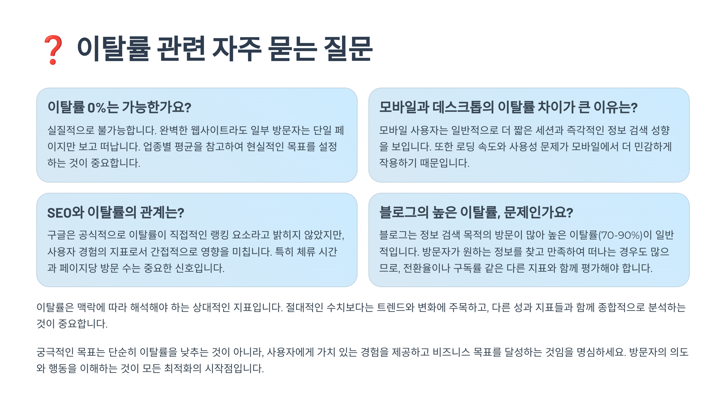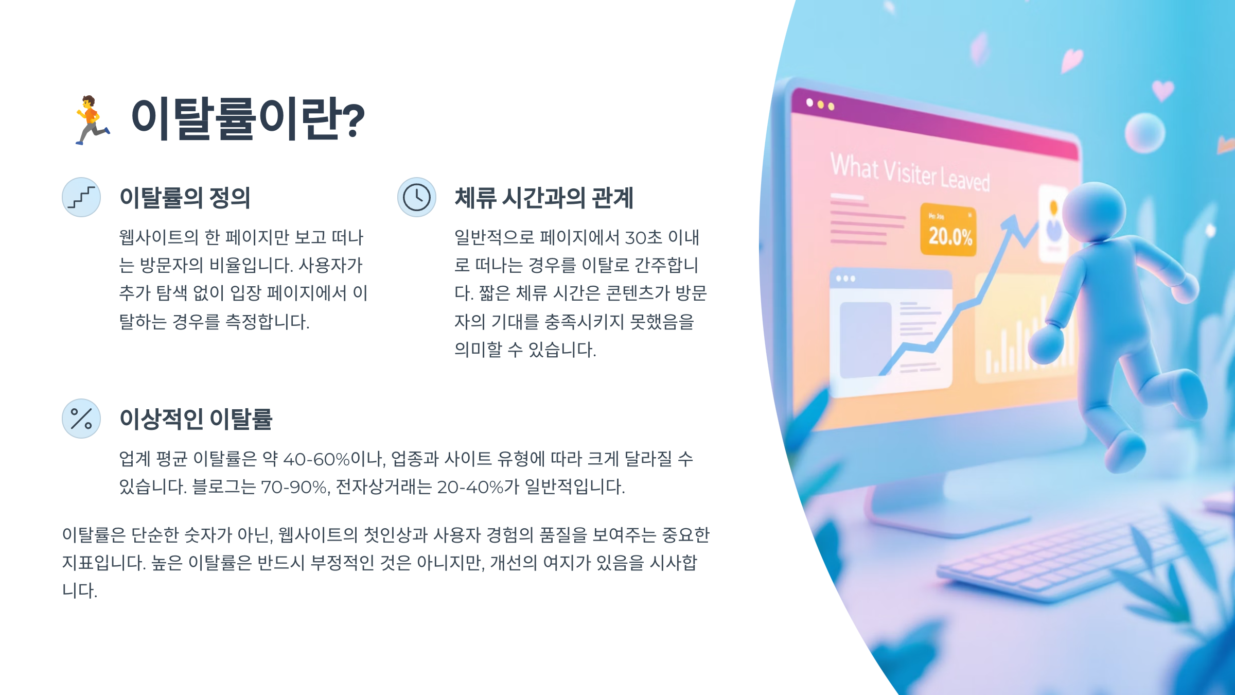 이탈률은 사용자 경험과 광고 효율, SEO까지 모두 연결되는 복합적인 지표이기 때문이죠.