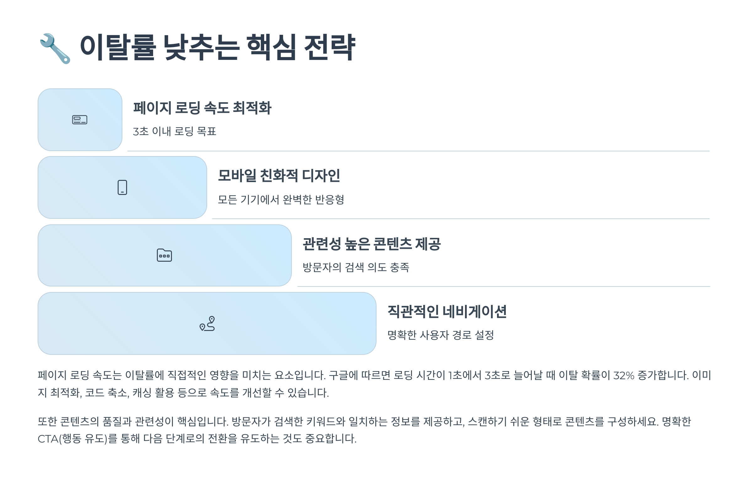 이탈률을 줄이기 위한 첫걸음은 콘텐츠의 질을 높이는 것이에요. 방문자가 클릭할만한 제목에 걸맞은 깊이 있는 정보를 제공해야 해요.
