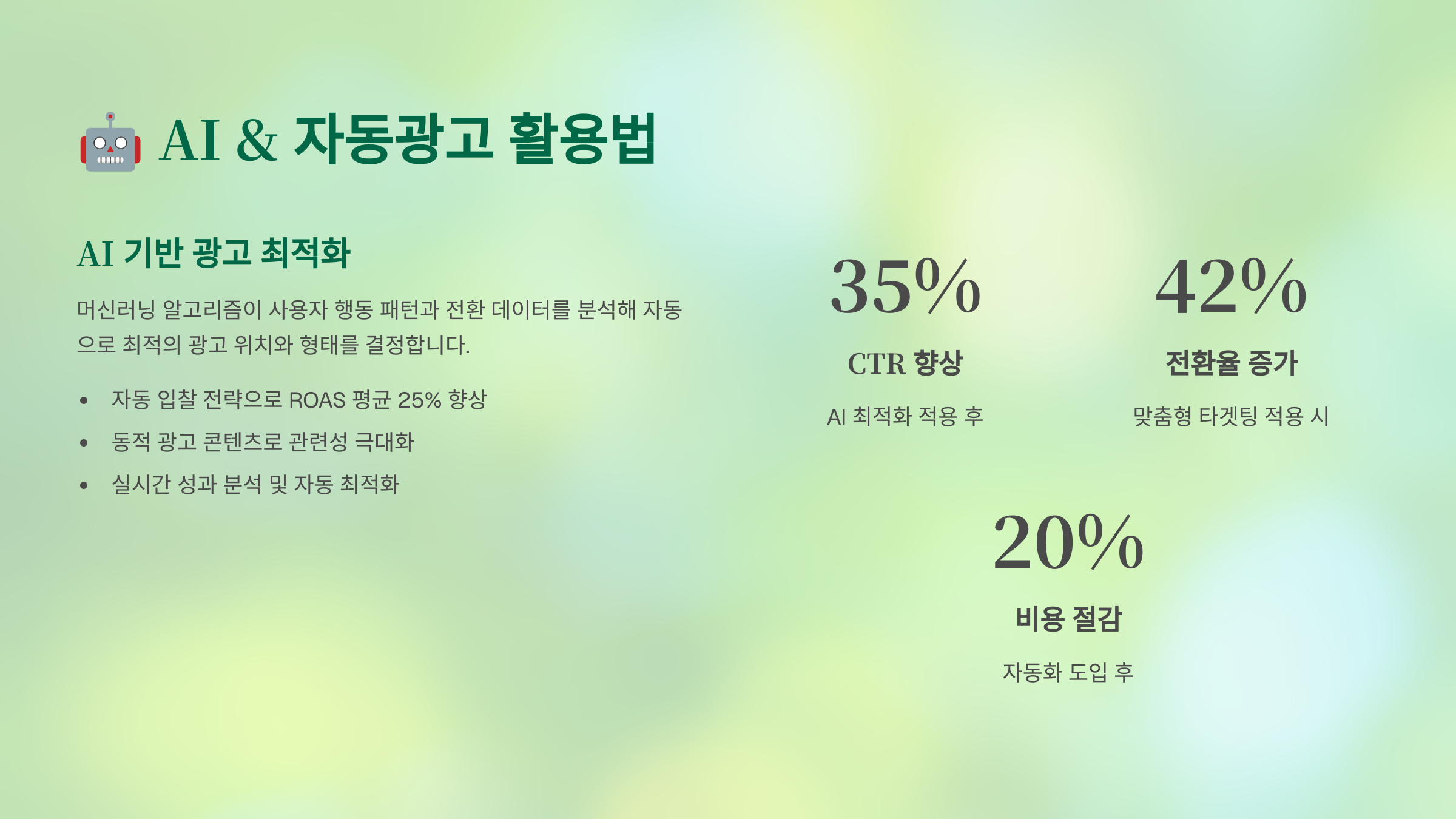 | AI 자동광고 | 관리 쉬움, 자동최적화, 다양한 위치 배치 | 광고 과다/UX 저하 가능성 |