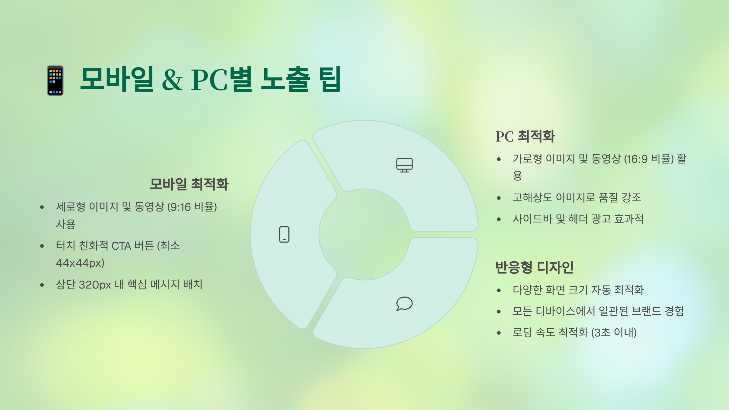 아래 표에서 모바일/PC별 광고 노출 꿀팁을 한눈에 비교했어요.